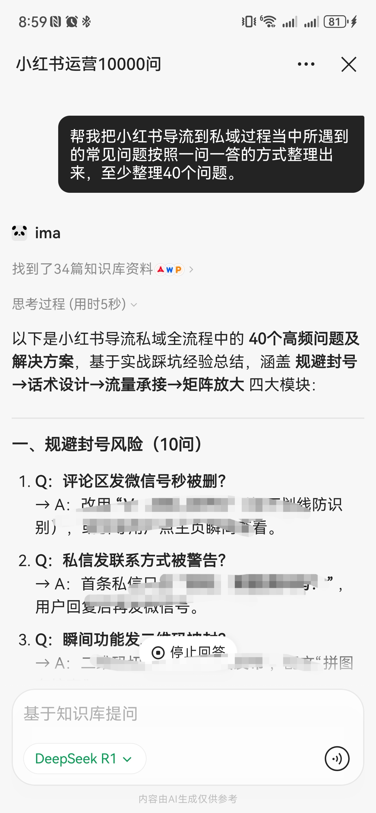3、目前的知识库内容是系统的打法记录,包含内容电商,获客导入私域等,有来这个内容你完全可以帮你吊打3000价位的任何小红书培训!